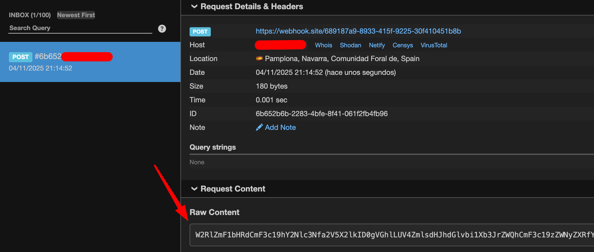 As you can see, the command ran successfully — and if we peek at the attacker’s web server, there’s a little present waiting for us: